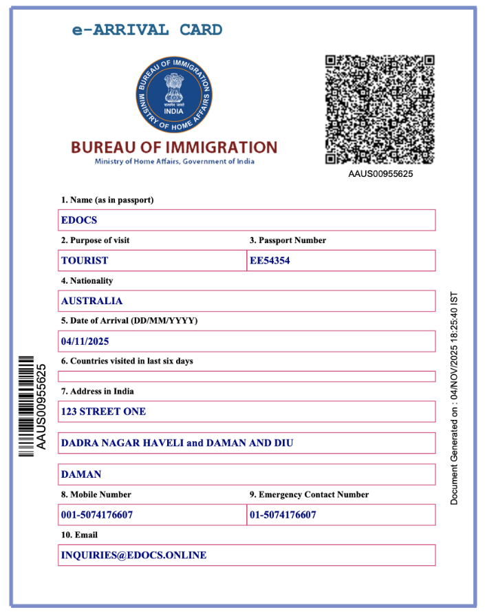 The India E-Arrival Card also known as the India Digital Arrival Card, India eArrival Form, or simply the India Arrival Declaration—is a mandatory online form required for all travelers entering India by air, sea, or land.